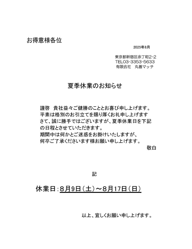 夏季休業のご案内